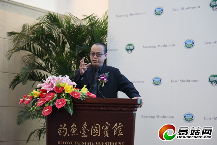 上海雪榕生物科技股份有限公司董事长兼总裁杨勇萍先生在“雪榕生物新品牌战略发布会”上演讲。