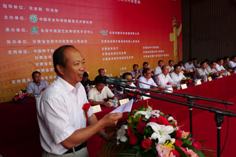 甘肃省农牧厅杨祁峰副厅长在致辞中指出,开展科学技术示范,组织现场观摩、评选科技种植能手、奖励种植农户,是一种简捷有效的新形式和公平竞争的新机制,值得学习,值得充分肯定。这种集规模化种植、标准化生产、区域化布局、商品化销售,品牌化发展和产业化经营为一体的基本思路,是推动全省农业产业化发展的有效措施之一,有力促进了农业科技成果的有效转化,促进了我省旱作农业区蔬菜产业的发展,促进了种植区农民的增产增收。