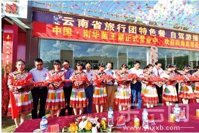 日前,一期工程投资3000多万元,装修以“彩云之南”为主题,取名叫“南华菌王巢”的野生菌生态美食城在楚大高速公路南华段两旁拔地而起。楚雄州、南华县等有关领导和各地嘉宾出席了“南华菌王巢”开业典礼剪彩仪式,中共楚雄州委常委、州委宣传部长姜扬为“南华菌王巢”揭牌,宣布:“南华菌王巢”野生菌食购中心盛大开业!标志着南华有了云南第一个集野生菌、生态美食、旅游土特产和地方名店小吃为一体的餐饮旅游食购中心,省级旅行团自驾旅游野生菌美食接待站,彩云之南高速公路上最具特色的野生菌文化主题餐厅。