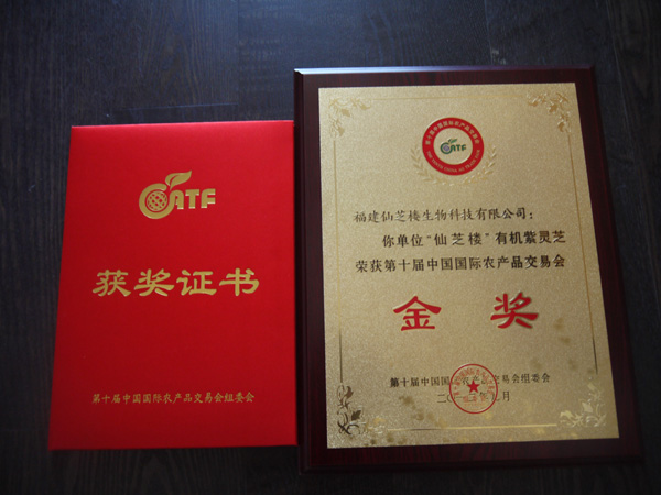 2012年9月27日——30日中国国际农产品交易会在北京农展馆举办。福建仙芝楼生物科技有限公司展出的“仙芝楼有机紫灵芝”以优异品质荣获第十届国际农产品交易会金奖。