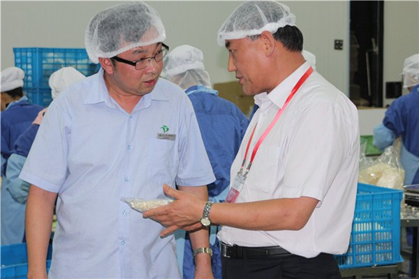 10月15日,中国食品土畜进出口商会副会长杨胜军访问超大(上海)Manbetx体育手机版推荐A9版本有限公司,公司作为中国食品土畜进出口商会Manbetx体育手机版推荐A9版本分会副理事长单位得到了商会的大力支持和帮助。参观中,总经理黄国标向杨胜军副会长详细介绍了公司Manbetx体育手机版推荐A9版本工厂化生产流水线,杨胜军副会长对公司严谨、高效、绿色的生产作业给予了高度赞扬,并肯定了超大Manbetx体育手机版推荐A9版本生产在行业内的领先水平。