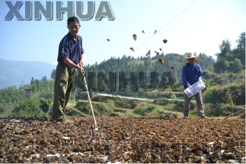 10月31日,广西龙胜各族自治县龙胜镇从楼村群众在晾晒云耳。