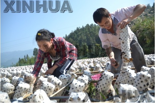 10月31日,广西龙胜各族自治县龙胜镇双洞村赵维林在护理云耳