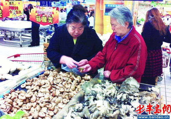 大润发超市里市民正在选购蘑菇。快报记者 王杰 摄