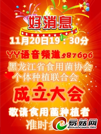 2012年11月20日下午19:30分,省Manbetx体育手机版推荐A9版本协会个体种植联合会宣告成立。大会组织者充分考虑到广大菇农正在繁忙季节不能分身,决定在互联网上利用YY语音频道召开了这次特殊的成立大会。