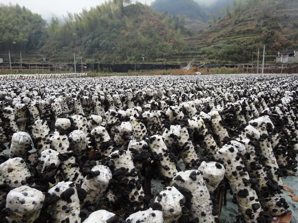 在榉溪村,目前合作社共有6户农户种植黑木耳,面积23亩,菌棒30万袋,合作社实行“集中生产、分散管理”的生产模式,即备料、菌棒制作、灭菌等环节统一由专业合作社完成,菇农只管接种、发菌管理和出菇,不用添置任何生产设备,就能进行黑木耳的种植。这样的模式不仅有效提高专业化程度和生产效率,且菌棒出菌率高、成本低,孔新平给我们算了一笔账,每亩田可放菌棒13000个,每个菌棒的成本不到2元,能产出2-3斤左右的鲜木耳,按目前鲜木耳3.5元一斤的市场价计算,每亩的纯收入在5万元以上,“今年上半年,县农业局组织我们去龙泉、庆元、丽水等地参观黑木耳基地,当时听他们介绍黑木耳的效益时,根本就不相信,自己种成功后才知道,种黑木耳产生的价值是实实在在的。”孔新平感慨地说。