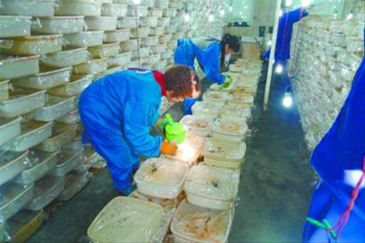 “种植北虫草的原料是小麦,盛放在菌盒中的小麦加水进行灭菌和降温后就可以接种了。接种后的菌盒会送进培养室避光培养,经过十余天的时间,才可以给菌盒通风。 ”肖玉波告诉记者,虫草的每一个生产环节都有着严格的要求,这是为了最大限度避免北虫草受到杂菌污染,从而保证了北虫草的品质。