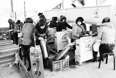 专业合作联合社社员正在制作香菇母体袋。该联合社投资35万元,购置了微机程控多功能装袋机,每小时可装香菇母体袋400袋,节省劳动力、降低成本均在2/3以上。