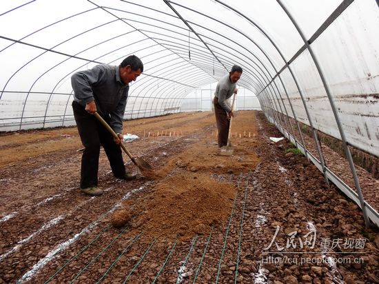 重庆铜梁县侣俸蔬菜基地业主在农业科技人员指导下,用