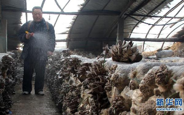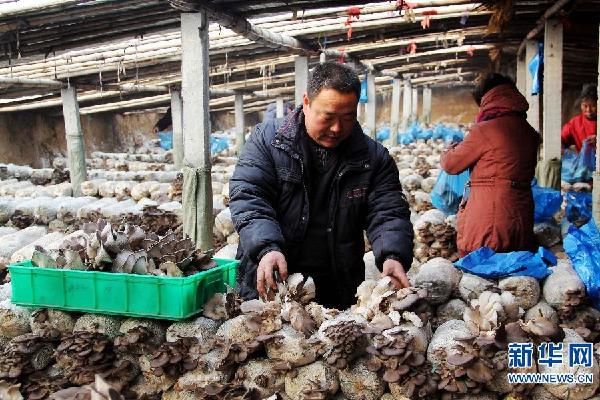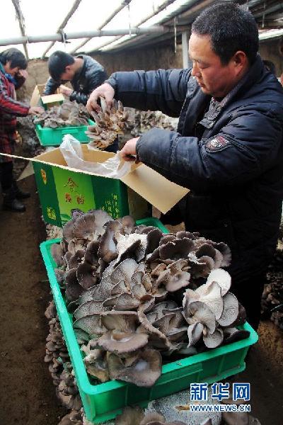 植基地的菇农加紧时间采摘蘑菇供应市场。近期这个基地每天可销售蘑菇5000余斤。该基地自2010年成立以来,目前已发展Manbetx体育手机版推荐A9版本大棚20个,直接带动周边村庄60余户农民参与Manbetx体育手机版推荐A9版本的生产和销售,基地农户年人均增收2000余元。(朱旭东 摄)