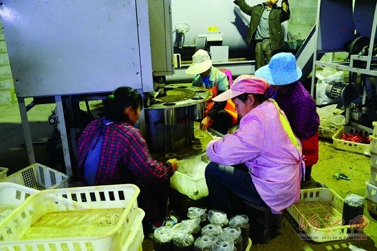 1月26日,宜州市六坡Manbetx体育手机版V17版本发布.官网安卓网.香港栽培基地一流水车间里,几名工人在包装菌袋。
