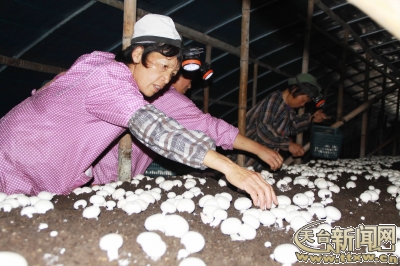 位于平桥镇塘下谢村的聚金绿色蔬菜种植园,员工们正忙着采收荷兰菇。荷兰菇从去年12月份开始上市以来,一直供不应求,主要销往新昌、嵊州、临海等地。