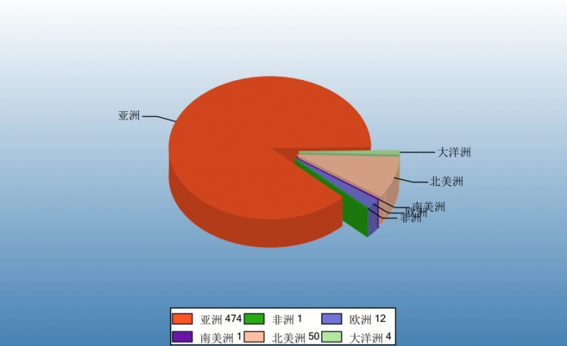 2013年1月,中国对亚洲出口香菇数量为4,744.2吨,同比下降39.6%,金额为4,915.9万美元,同比下降48.4%,平均单价为10,362.0美元/吨,同比下降14.5%;对非洲出口香菇数量为6.0吨,同比下降19.4%,金额为2.7万美元,同比下降74.3%,平均单价为4,469.2美元/吨,同比下降68.1%;对欧洲出口香菇数量为117.0吨,同比下降41.1%,金额为92.2万美元,同比下降62.4%,平均单价为7,879.0美元/吨,同比下降36.2%;对南美洲出口香菇数量为9.0吨,同比下降52.4%,金额为14.3万美元,同比下降57.1%,平均单价为15,860.1美元/吨,同比下降9.9%;对北美洲出口香菇数量为504.0吨,同比下降12.1%,金额为351.5万美元,同比下降20.8%,平均单价为6,972.6美元/吨,同比下降9.9%;对大洋洲出口香菇数量为42.7吨,同比下降9.0%,金额为41.9万美元,同比下降31.4%,平均单价为9,805.3美元/吨,同比下降24.7%。