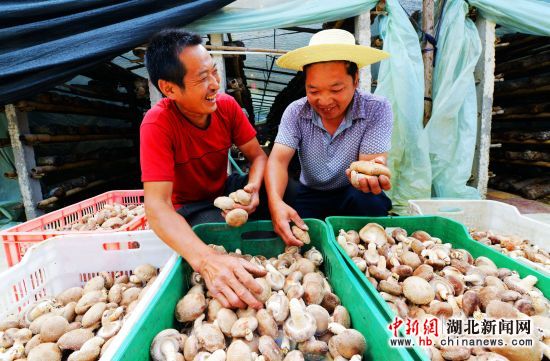 8月20日,菇农在对湖北保康县龙坪镇反季香菇进行分拣。