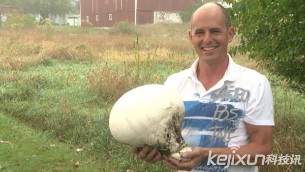 艾德两手捧着一颗白色大球,乍看以为是恐怖的骷髅头,别怕别怕,凑近看仔细一点,这其实是蘑菇啦!记者上门採访,拿一个篮球做比较,竟比篮球还要大。密西根州大学生科系教授指出,它们显然是巨型马勃。就我知道的,巨型马勃是全球最大的蘑菇。