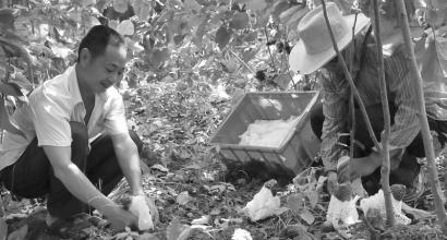向程(左)采摘竹荪