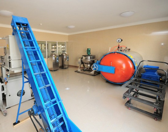 朝鲜国家科学园中央蘑菇研究所洗涤调剂室。图片来源:朝鲜《劳动新闻》