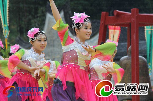 9时55分,一曲《菇神颂》宛如天籁之音,悠扬婉转,乐舞告祭开始,《香菇功夫》、《寻梦菇乡》等独具菇乡特色的节目精彩上演。