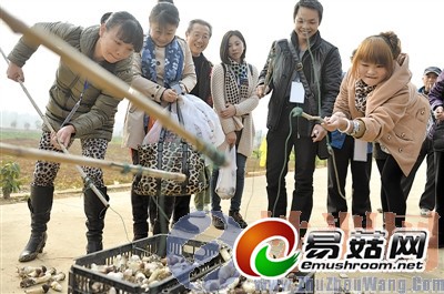 采蘑菇的队伍浩浩荡荡挺进蘑菇棚