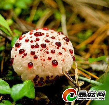 近日,研究人员在北美洲的森林里发现了一种会渗出红色液体的真菌,他们叫它出血齿菌。出血齿菌学名“Hydnellum pecki”,是真菌家族不同寻常的成员之一。科学家对出血齿菌的研究表明其并不具有毒性。不过,这种蘑菇味道却苦。科学家经分析发现,出血齿菌渗出的亮红色液体中含有一种被称之为“Atromentrin”的抗凝血剂,拥有与天然有机抗凝血剂肝磷脂类似的特性,具有药用价值。