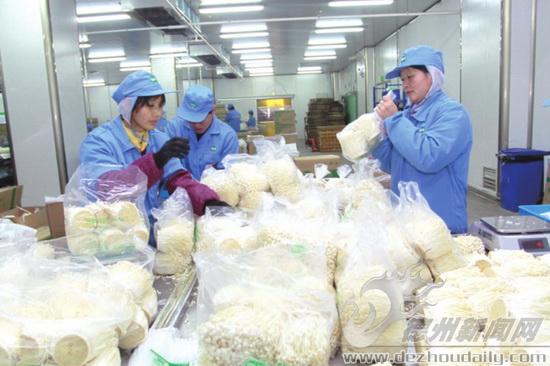包装车间内,工人正在紧张地对金针菇进行包装。