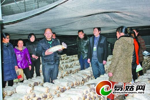 昨天,技术员为何埂农民普及养菌知识  记者 郭发祥 摄