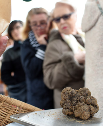 易菇网讯:据法新社消息,由于气候升温,降雨量减弱,今年法国境内的黑松露产量减少,在当地的松露市场上,一公斤黑松露售价可达到1300欧元,不少顾客表示价格昂贵。