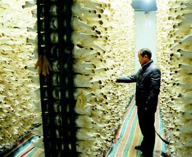 生产情况。该公司采用工厂化育菇,年生产杏鲍菇、双孢菇、鸡腿菇等10余种