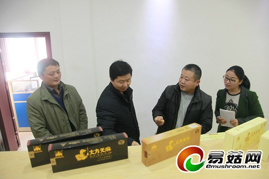 贵州乌蒙腾菌业有限公司总经理张光文(左二)为考察人员介绍新产品