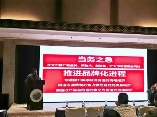 蒋文龙在报告中向与会人员首先介绍到中国农业发展正处于剧烈变革的时代,大方天麻需要从产业化到品牌化的转变,产业化发展与品牌化发展的差别在于前者以满足人们对物质的要求为主要目的的一种生产;后者以满足人们多元消费需求为主要目的。他还提到,创建“大方天麻”区域公用品牌,要先了解品牌经济具有符号经济、关系经济、价值经济三大特征。在大力推广新品种、新技术、新设备,扩大市场覆盖的同时,创造提升实体经济价值的符号经济,创造以消费者心智占领为目的的关系经济,创造以产品与符号的意义为价值的价值经济。