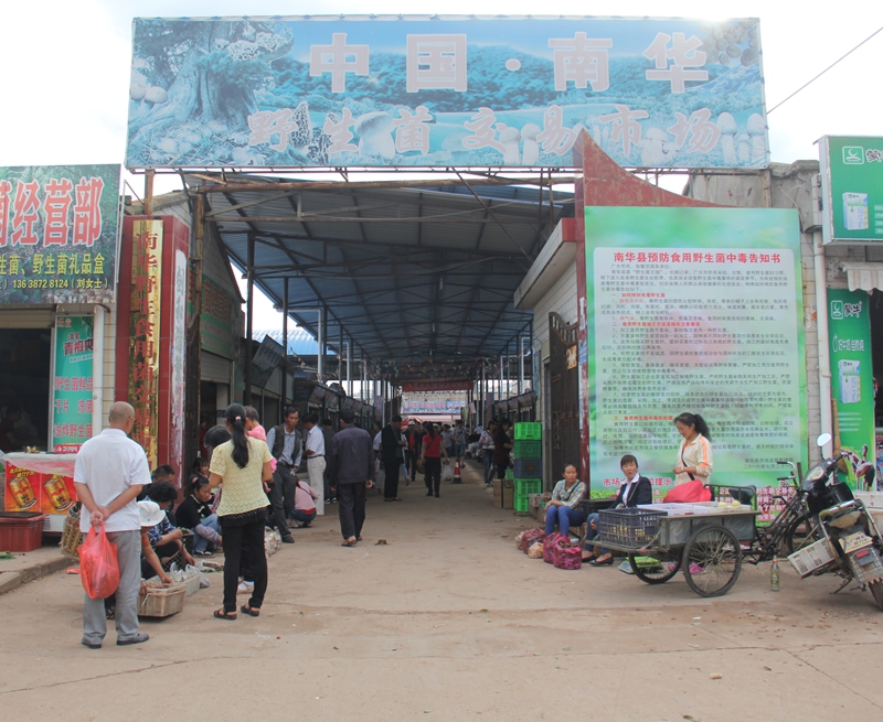 南华连续10余年致力于封山育菌工作,极力培育野生菌产业,已连续13年举办“野生菌美食文化节”。得益于全年充沛、均衡的降雨,加上长期的封山育菌,野生菌生长周期延长,野生菌交易市场交易期较往年大大延长,往年南华县野生菌交易市场一般5月中旬开始鲜菌交易,10月底基本已无鲜菌上市,而2016年5月中旬鲜菌上市,一直到12月初仍有鲜菌陆续上市,鲜菌生长、交易周期较往年延长一个多月。2016年,南华野生菌市场集散交易量达13941吨(全部按鲜菌计算),较上年增1000多吨,交易方式由过去的菌农、菌商到野生菌交易市场零售为主,发展到批发、零售、电商、快递一起上的多元化经营模式。