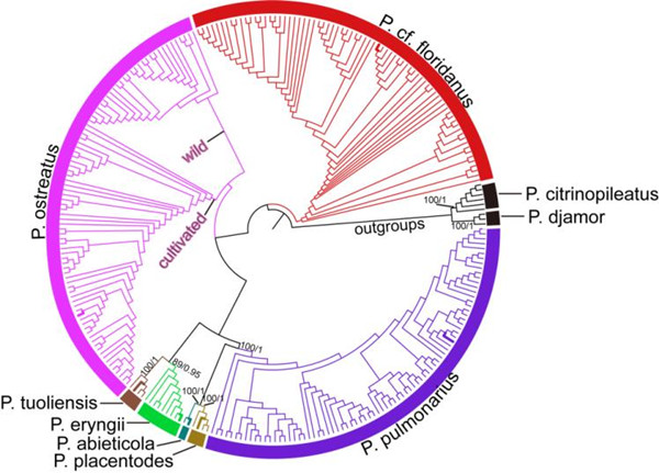 侧耳复合群(Pleurotus ostreatus species complex),是我国栽培最为广泛且非常重要的食药用真菌,商品名一般统称“平菇”。这个复合群的物种个体形态可塑性强,易受环境条件影响而出现各种表型,分类困难而混乱。如何精准构建“平菇”家谱并快速准确地鉴别其中的物种,是生产中必需解决的问题。