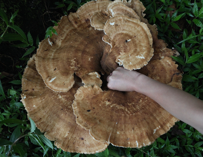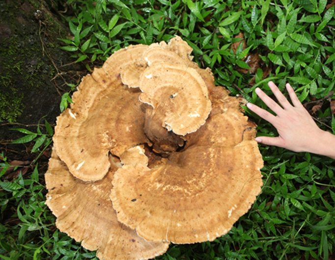 8月4日,一朵外形奇特,尺寸巨大的神秘蘑菇惊现云南普洱太阳河国家公园小熊猫庄园。这朵巨型神秘蘑菇呈不规则形,实测周长近1.8米,重达8公斤,是该地区发现的最大尺寸和重量的蘑菇,可谓“菌王”。庄园的住客纷纷表示这是他们见过最大的蘑菇,直呼大开眼界。