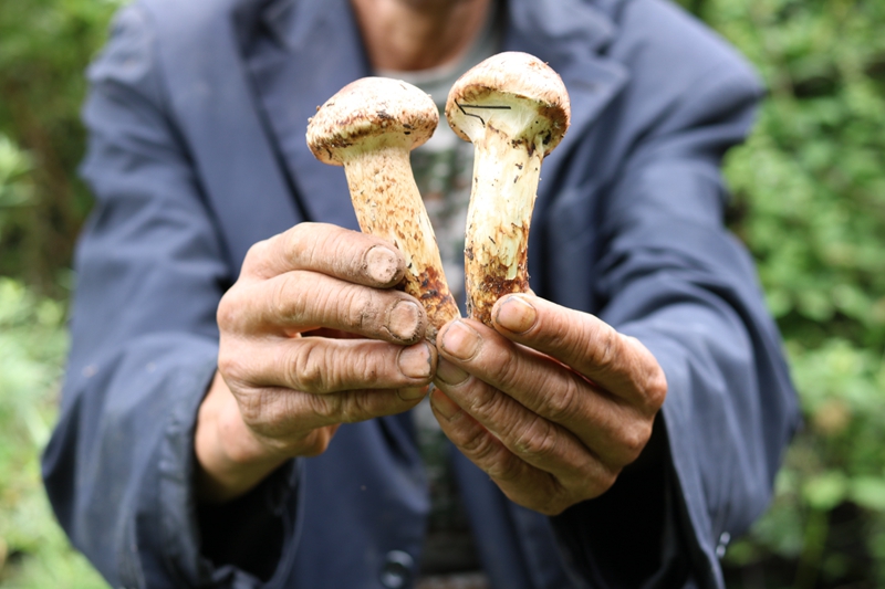 扎史次姆把松茸从土中翘出