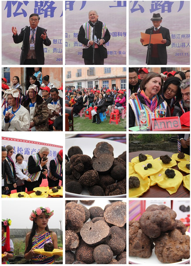 大会还邀请国家公安部昆明警犬训练基地的人员演示了松露犬探测采集松露的实地演示。会后还进行为时3天的野外科学考察,不仅考察领略了云南怒江大峡谷奇特的立体植被,块菌发生的土壤类型及其森林生境,惊险的崎岖山路,湍急的怒江江水,断壁绝崖和雄伟壮观的奇峰异峡,考察期间还挖掘了当地民族关于“猪拱菌”块菌的奇妙传说,填补和丰富了我国块菌文化空白。