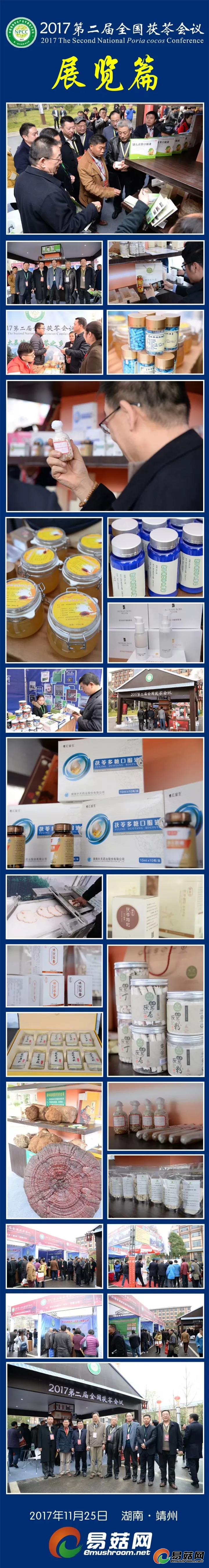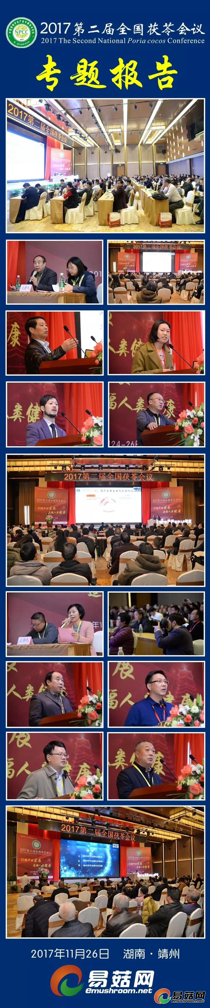 2017第二届全国茯苓会议于11月24-26日在湖南省靖州县举行,会议由中国菌物学会主办,靖州苗族侗族自治县茯苓专业协会、中国菌物学会菌物产业分会、易菇网等单位承办,会议安排了主题报告、专题报告共16个,同期举行了茯苓产业发展圆桌论坛、茯苓产业技术创新战略联盟成立会议暨第一届理事会第一次会议,茯苓养生烹饪大赛、茯苓会议展览等精彩活动,是继2014首届全国茯苓会议之后我国茯苓产业又一次盛会。