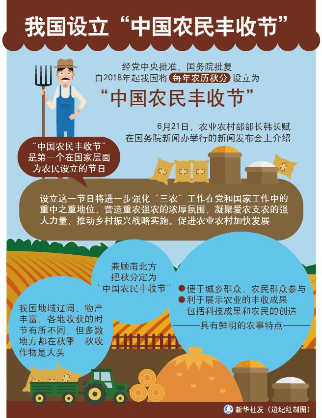 会议指出,在乡村振兴开局之年设立“中国农民丰收节”正当其时,是推进实施乡村振兴战略的重要举措和重要推动力,有利于进一步彰显“三农”工作的重要地位,营造重农崇农的浓厚氛围,凝聚爱农支农的强大力量。办好丰收节顺应亿万农民的热切期盼,是传承和弘扬农耕文明的重要举措,有利于推动深化农村改革。