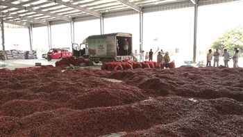 8月份是辣椒丰收的季节,东屯乡覆盖全乡的5000多亩“订单辣椒”也迎来了丰产、丰收、畅销的好年景。该乡新寨村辣椒分拣中转中心厂房里,等待装车的大量红辣椒被摊晾在地上,自8月6日正式开采以来,每天都会有一万多斤朝天椒、红线椒、珠子椒从各村运往这里,再由收购方分销出去。