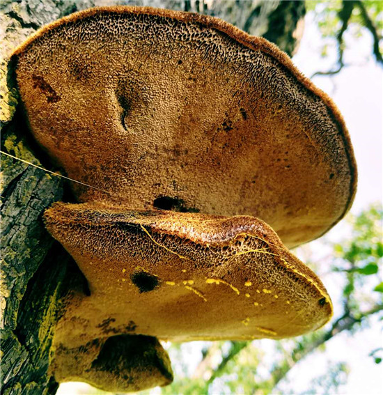 寄生在枣树上的粗毛纤孔菌成熟子实体
