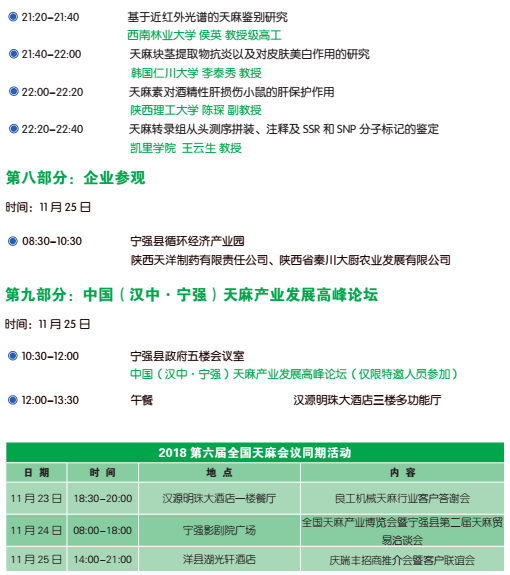 全国天麻会议自2012年在湖北宜昌举办首届以来,相继在北京昌平(2013年)、贵州德江(2014年)、贵州大方(2016年)、云南彝良(2017年)召开了五届,引导了全国天麻产业的发展和提升,已成为我国天麻行业公认的唯一的专业交流展示平台。陕西汉中是我国天麻传统产区,天麻有性繁殖人工Manbetx体育手机版V17版本发布.官网安卓网.香港最早成熟于汉中宁强县,经过几代人的努力,宁强县已发展成为天麻“两菌一种”的主要供应区之一,天麻种植面积一直稳定在1.5万亩左右,年产鲜天麻超过1万吨,年均实现产值2亿多元,覆盖全县贫困户近万户三万余人,已成为宁强县脱贫攻坚的主导产业和支柱性特色产业。中国菌物学会产业专题技术论坛(二十)——2018第六届全国天麻会议现定于11月23-25日在陕西省汉中市宁强县召开,以“赋能产业、聚力健康、助推扶贫”为主题,将举行天麻药食同源产业发展高峰论坛、天麻“两菌一种”发展高峰论坛、天麻产业精准扶贫经验交流会、新产品新技术交流会,以及天麻产业博览会、企业参观等活动。本次会议是在大健康产业加速发展的趋势下,在我国脱贫攻坚的关键时期,天麻即将正式列入食药物质目录管理等背景下召开的一次重要会议,推动天麻产业走向规模化、标准化、产业化,将为群众脱贫增收、精准扶贫,全面推进新农村建设和发展贡献智慧和力量。会议安排如下: