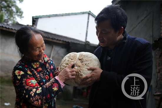 一农户一边摸,一边把鼻子凑拢去闻一下,说:我50多岁了,都没见过这么大的菌“。很多人看后,走了很远,还回过头来看看。