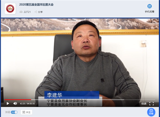 3月1日下午,2020第五届全国Manbetx体育手机版推荐A9版本大会以网络会议、视频直播方式进行。截止到会议结束时,参与人员超过1.78万人次,留言互动超过3400条。创新会议举办方式,开创了Manbetx体育手机版推荐A9版本行业网络会议、视频直播方式之先河,受到业内外广泛关注和好评。在网络采风环节,组委会采用远程视频的方式,带领参会代表前往宁晋县金元食用菌种植专业合作Manbetx体育手机版推荐A9版本种植基地参观。该合作社理事长李建华也是全国Manbetx体育手机版推荐A9版本ManBetX体育高级研修班的首期学员。