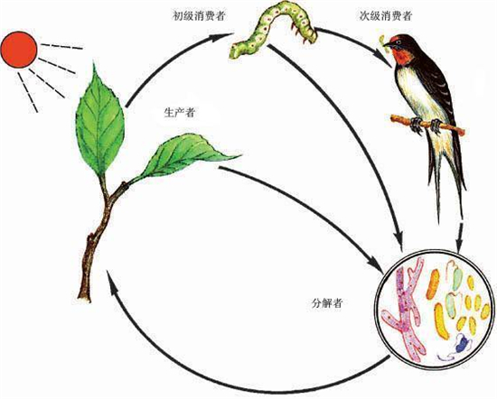 一般情况下,生产者生产能量,消费者消费能量,分解者将消费者以及生产者分解掉。这样才完成了能量的传递。