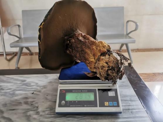 7月2日,杨大姐又在花丛中发现了两朵野生牛肝菌,菌面上还沾着清晨的露水,看上去十分新鲜,通过实际称量,重量竟然超过了前一天的最大一朵野生牛肝菌的重量,达到了2.8公斤。
