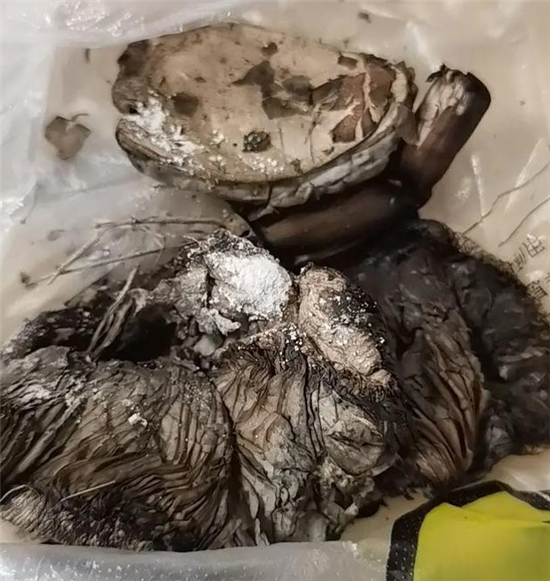 随后,家属向陈医生展示了傅阿姨食用的野生蘑菇。记者通过照片看到,傅阿姨食用的这种蘑菇呈黑色,面目可怖,和大家平时食用的蘑菇大相径庭。