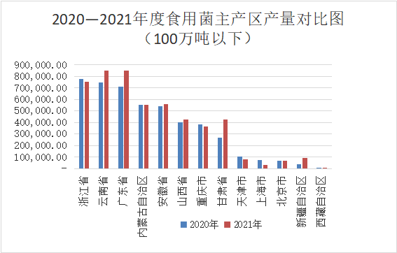 16个品种产量减少:猴头菇-0.15%、黑木耳-0.42%、茶薪菇-2.06%、银耳-3.65%、杏鲍菇-3.88%、金针菇-5.85%、北虫草-5.96%、草菇-8.99%、平菇-10.49%、冬虫夏草-13.42%、鸡腿菇-15.68%、竹荪-14.49%、白灵菇-17.86%、双孢菇-20.38、ManBetX体育-33.58%、榆黄蘑-58.21%、