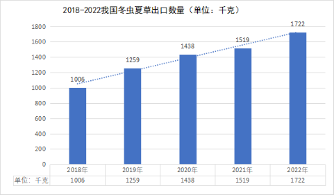 (2018-2022我国冬虫夏草出口数量不断上升)