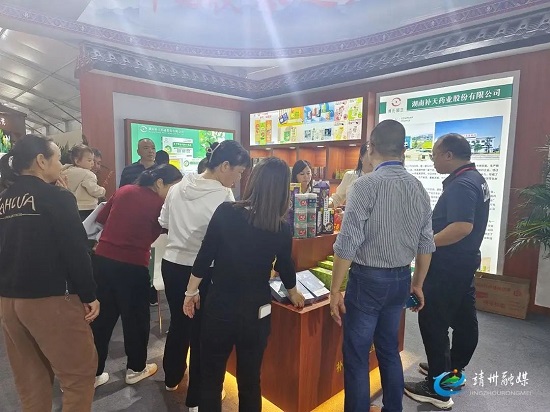 在靖州苗族侗族自治县民族广场,各个展区热闹非凡,市民、游客们穿行在各个展位前,被各式各样的产品所吸引,不时停下脚步,挑选心仪的产品。在综合形象展区,补天健康产业控股集团有限公司的展位前也是人气满满。