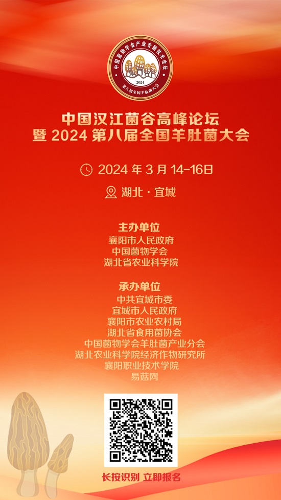 受低温寒潮极端天气影响,原定于 2024 年 3 月 6-8 日在湖北省 襄阳市宜城市举办的“中国汉江菌谷高峰论坛暨 2024 第八届全国羊 肚菌大会”延期至 2024 年 3 月 14 日-16 日召开,会议注册、论文提 交、报告申请及会议有关筹备工作正常进行。