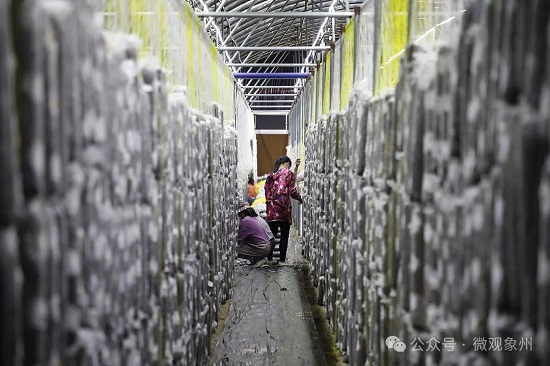3月20日,记者在百丈乡大满村生态ManBetX体育基地的大棚里看到,工人们忙着将一串串,一排排的菌棒挂起来……一派繁忙的景象。工人陈强和说:“我们这里一天大概有40多个工人做工,今天在这个棚里面是挂棒,品种为猴头菇,大概一天一个人平均能挂800到1000个。”
